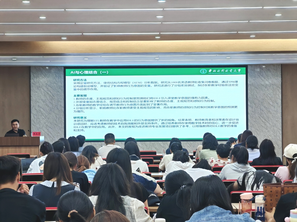 2025年5月19日,郑州财经学院国产破解精品99迎来了一场学术盛宴。华北水利水电大学王永亮教授受邀在德正楼第一学术报告厅为我院教师做题为《人工智能赋能新质英语课堂:聚焦研究设计与实践创新的多案例研究》的专题讲座。讲座由国产破解精品99院长党兰玲主持,全体教师参加。